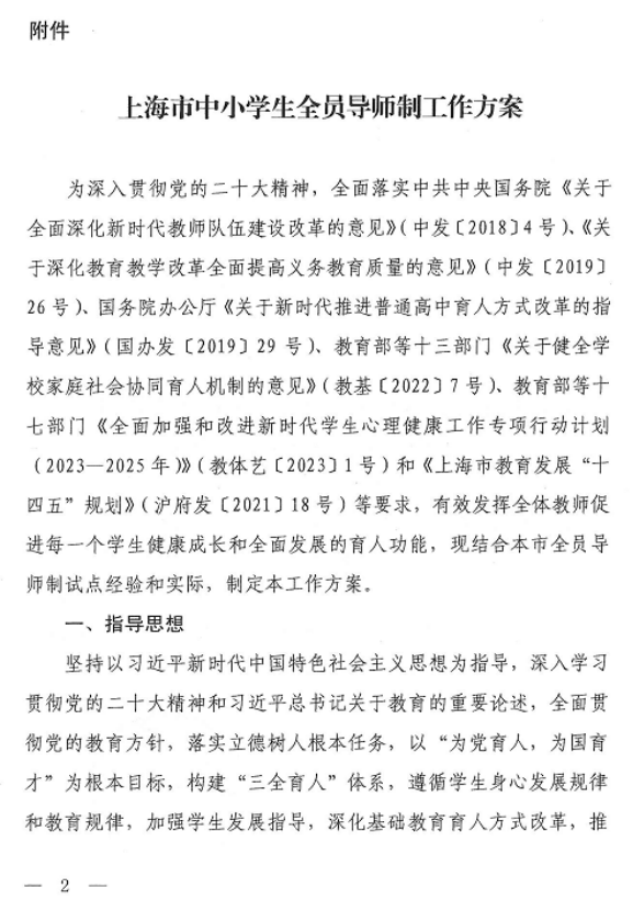 附件:上海市教育委员会关于印发《上海市中小学生全员导师制工作方案》的通知