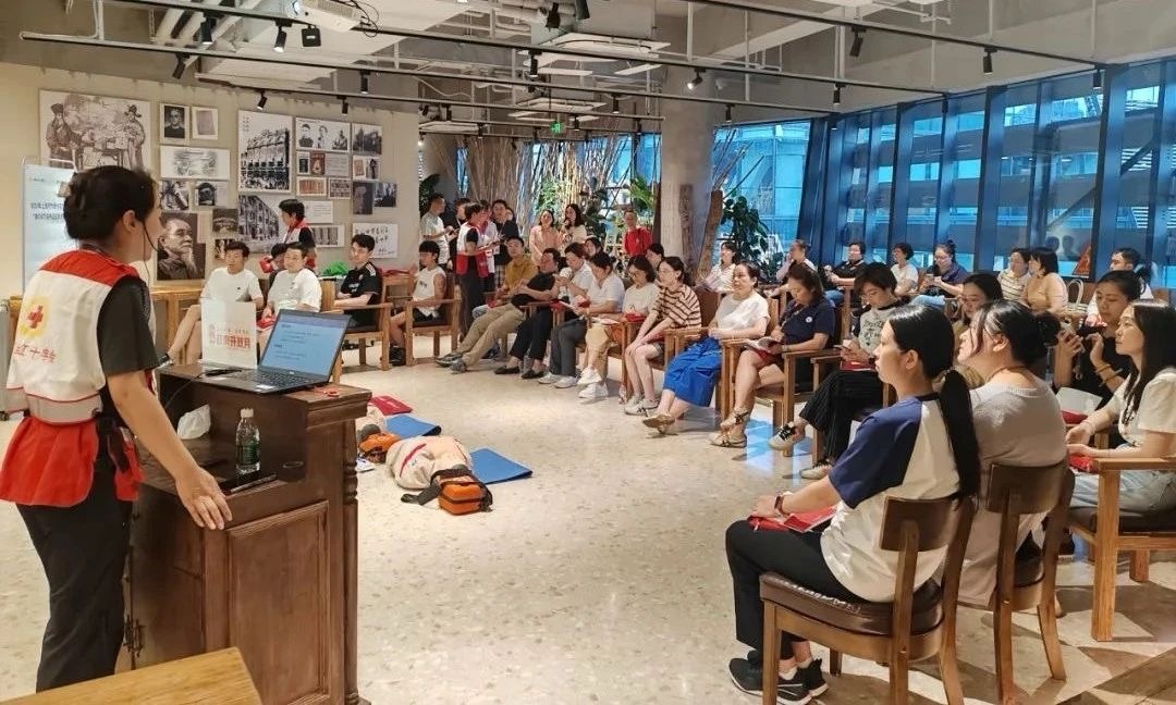 8月20日,长宁区政府开放月活动与2025年市区两级为民办实事项目持证应急救护培训课程深度联动,一场面向市民代表与白领的应急救护培训火热开展,40余名参与者在专业指导下系统地学习了急救知识,增强了城市安全意识。