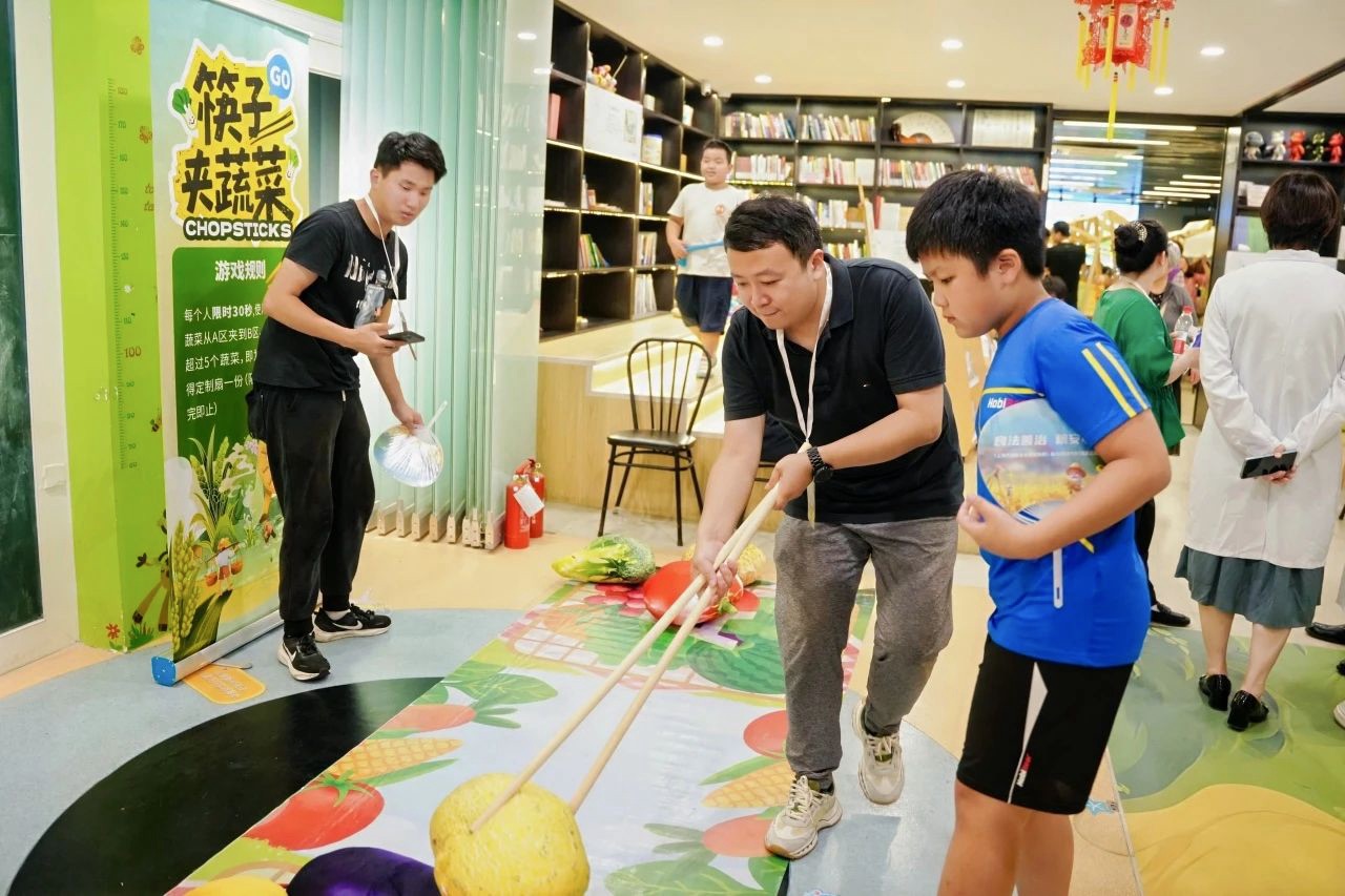 特别设置的“筷子夹蔬菜”“手工制作爱粮节粮艺术品”等体验互动环节,吸引了众多亲子家庭的目光,现场一片欢声笑语。特意带着儿子同行的刘女士介绍,孩子正好放暑假,参加了科普手工,加深了其对“粒粒皆辛苦”的认知,十分有意义。