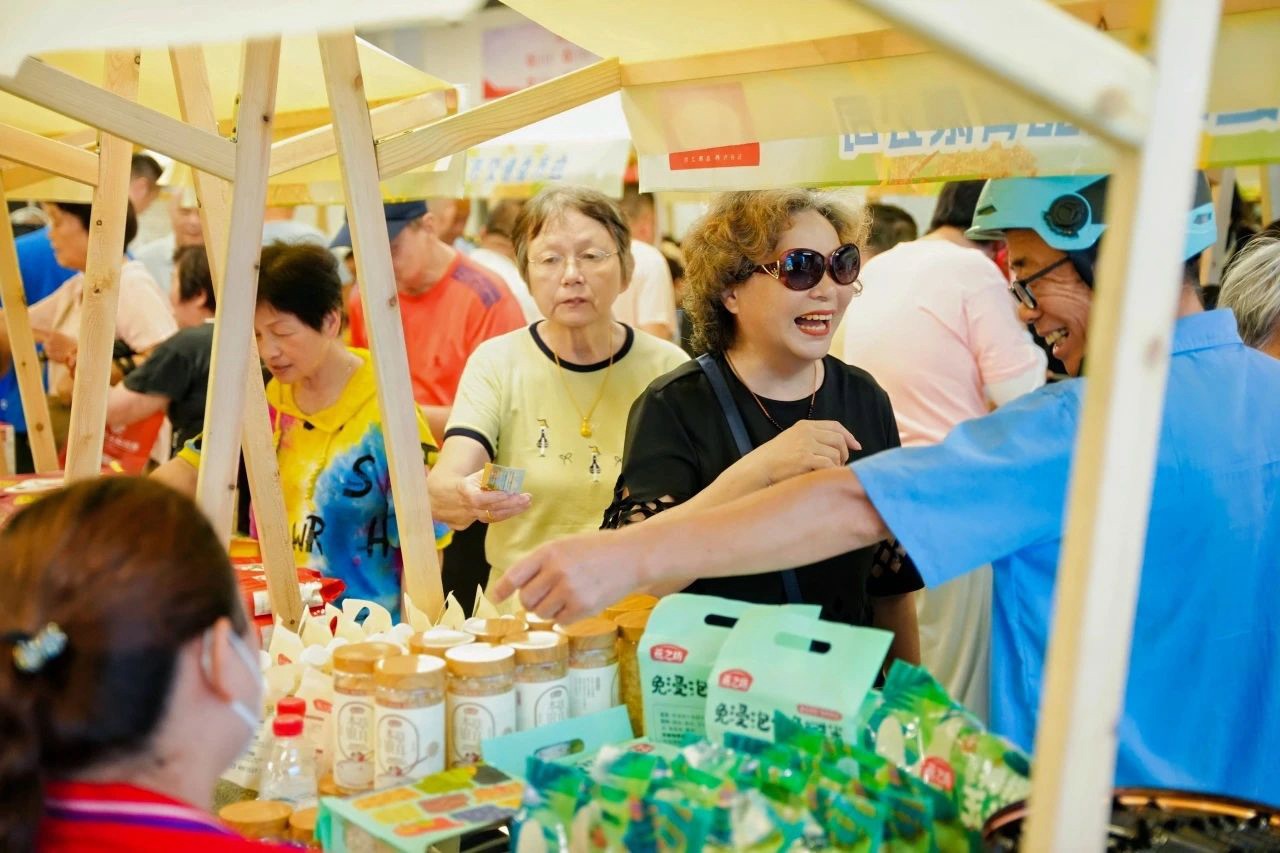 上午10时许,活动现场人头攒动,不少社区居民提前来访。活动设置市集展销区、知识科普区和体验互动区。数十个摊位前热闹非凡,既有荣获“上海好粮油”称号的米面粮油产品,也有上海本土种植的鲜蔬和水果,还有精选的外地品牌商品,丰富多样的选择让居民收获颇丰。
