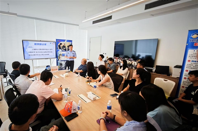 在宣讲环节,长宁经侦支队以“涉企风险防控”为核心主题,通过案例分享结合报案指引的方式,向企业代表讲解涉企案件的常见类型、风险点及应对流程,帮助企业提升风险防范意识和依法维权能力。