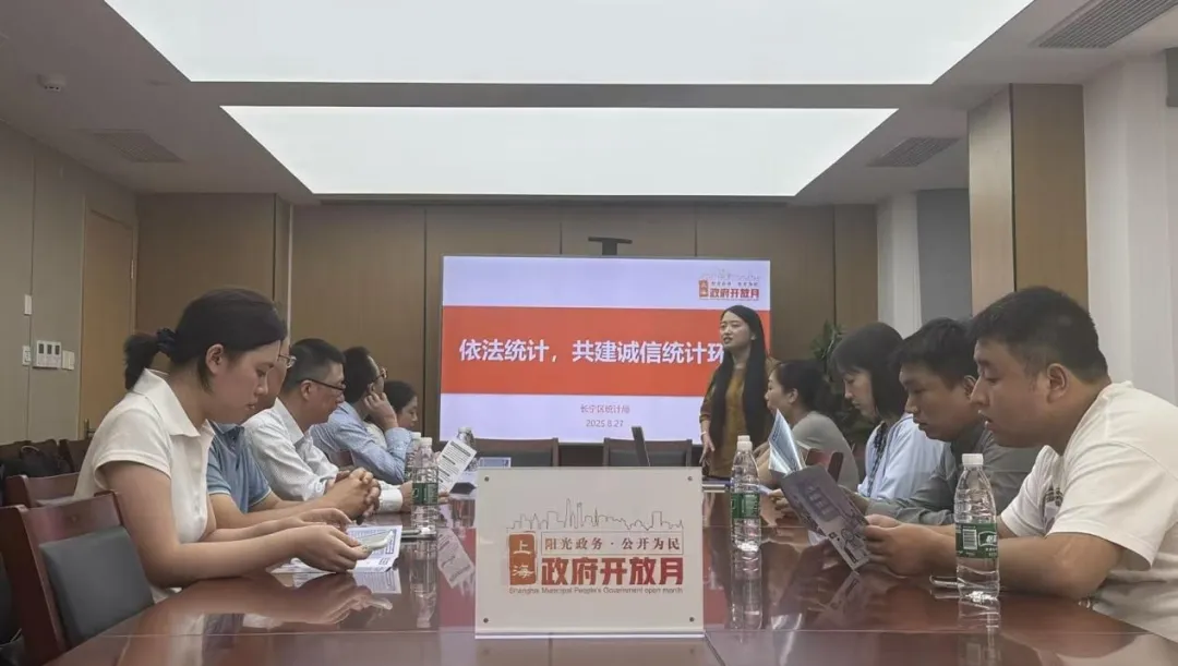 为推动统计工作公开透明,提高公众对统计工作的理解、支持与配合,8月27日,长宁区统计局开展了以“依法统计,共建诚信统计环境”为主题的政府开放月活动。本次活动邀请了8位市民代表,通过实地参观、座谈交流等方式,近距离感受统计工作氛围,深入了解统计工作内容。
